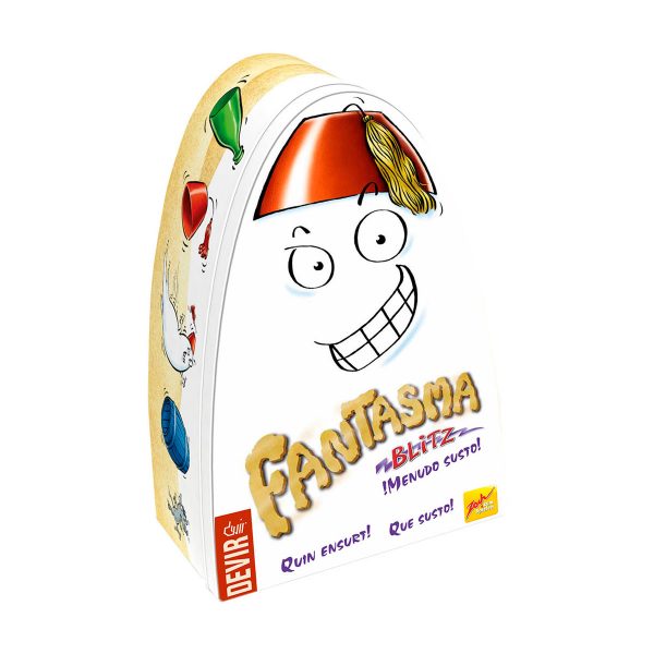 En este juego se pone a prueba la percepción y la habilidad de conectar rápidamente formas y colores, idénticos, similares u opuestos, al relacionar los objetos materiales y las cartas. En Ghost Blitz, cinco artículos de madera se sientan en la mesa esperando ser atrapados: un fantasma blanco, una botella verde, un lindo ratón gris, un libro azul y una cómoda silla roja.